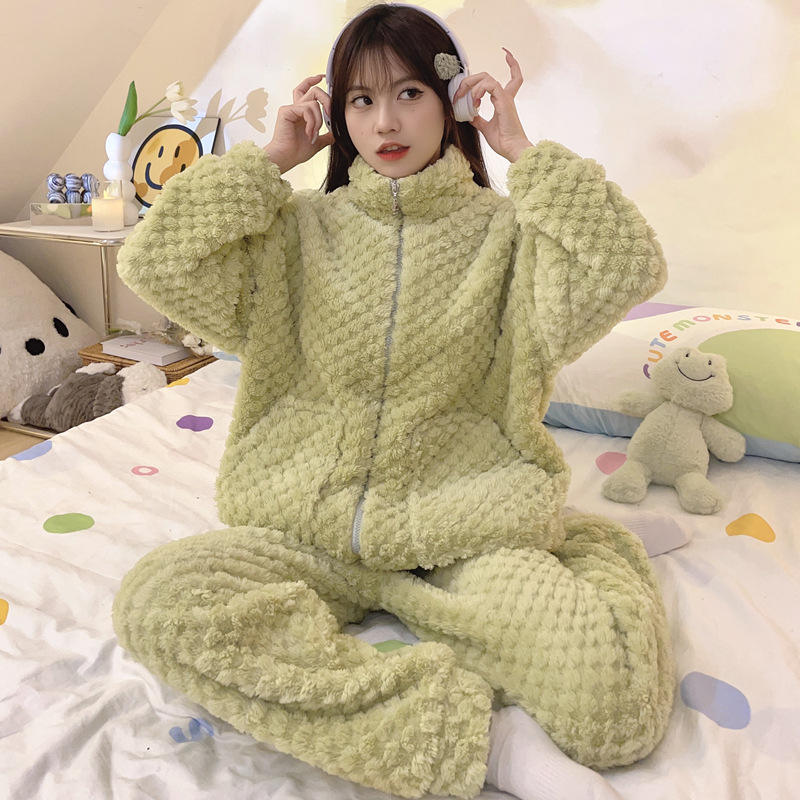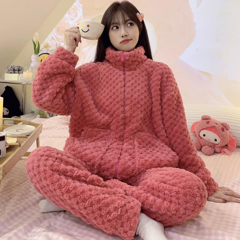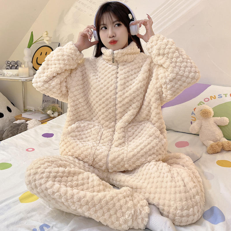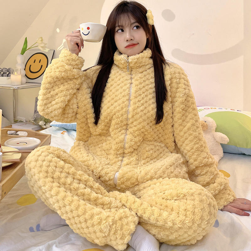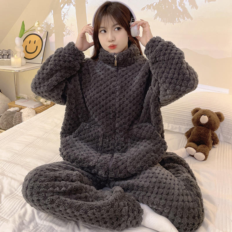 Samwestart ชุดนอนผ้าสักหลาดเนื้อหนาสำหรับผู้หญิง, ชุดเสื้อผ้าใส่ในบ้านมีซิปแขนยาวสำหรับเล่นกีฬาใส่สบายเหมาะสำหรับฤดูหนาว