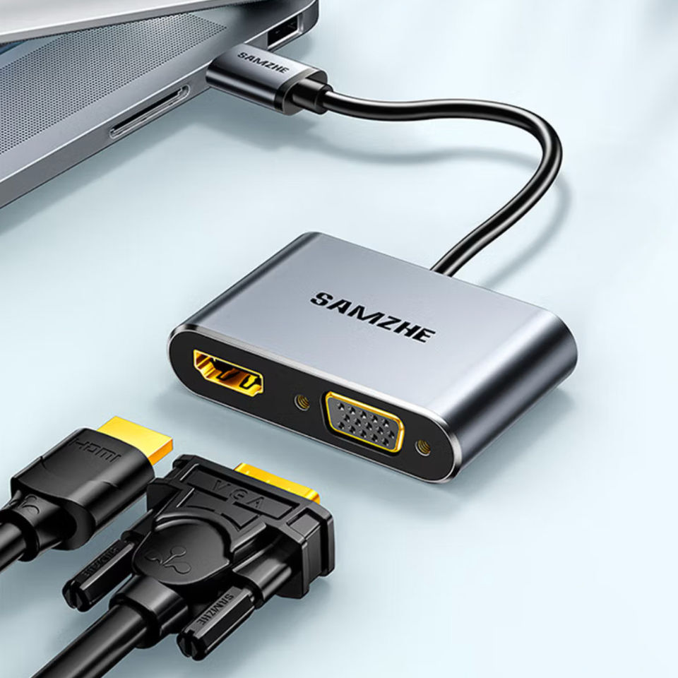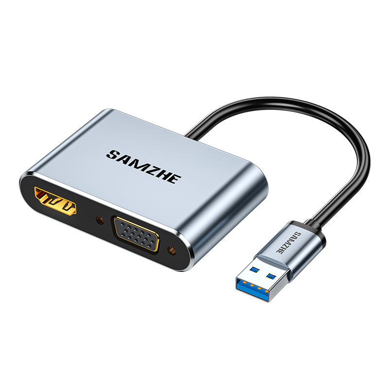 สายแปลง SAMZHE Alloy USB3.0 เป็น HDMI/VGA สำหรับเชื่อมต่อแล็ปท็อปกับทีวี โปรเจคเตอร์ เพื่อขยายความละเอียด HD