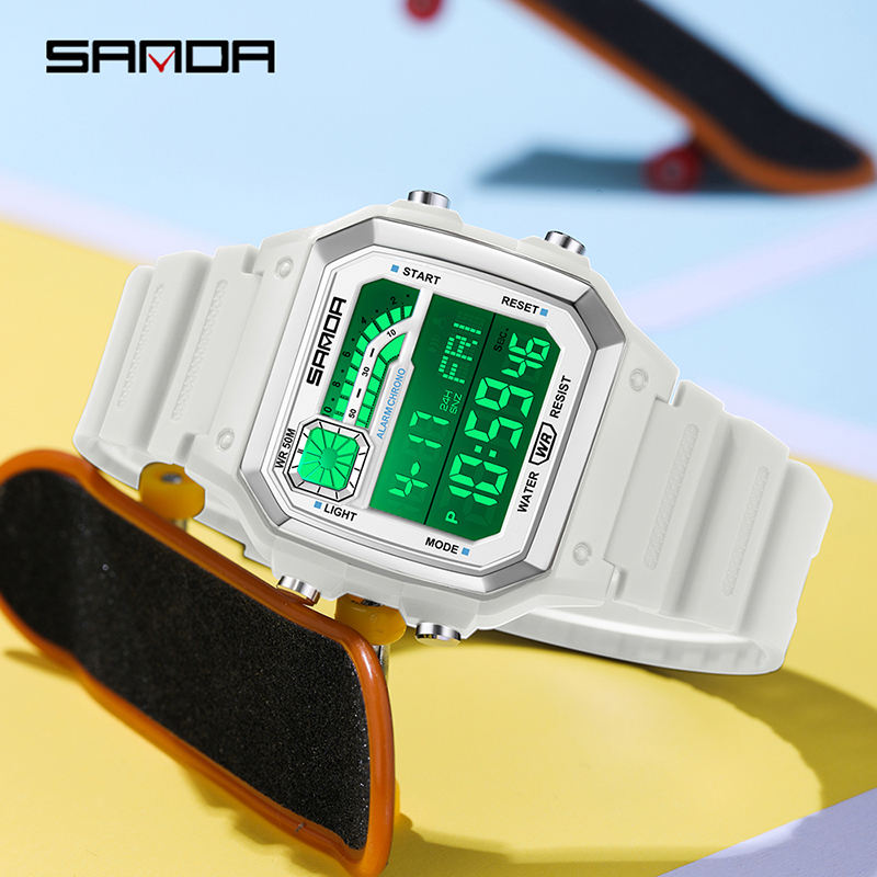 Sanda นาฬิกาอิเล็กทรอนิคส์ Miyota สำหรับผู้ชาย, นาฬิกา6196กีฬากันน้ำเรืองแสงมัลติฟังก์ชัน