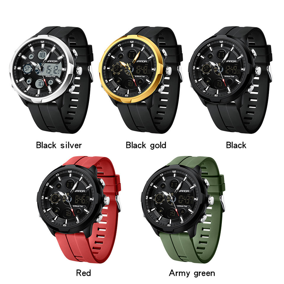SANDA 9053 นาฬิกาสปอร์ตดิจิตอลสำหรับผู้ชาย LED ควอตซ์ 3 พิน 50M กันน้ำสายยางนาฬิกาปลุกโครโนกราฟ ทาคีมิเตอร์