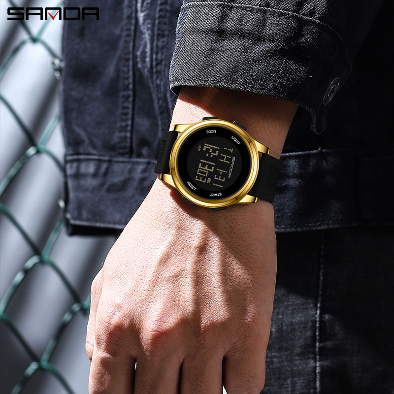 นาฬิกาข้อมือผู้ชาย SANDA 9067 รุ่นใหม่ สไตล์หรูหราโบราณ สำหรับกิจกรรมกลางแจ้ง พร้อมฟังก์ชั่นจับเวลา นาฬิกาปลุก จอแสดงผลดิจิตอล HD LED เรืองแสง กันน้ำได้ 5BAR