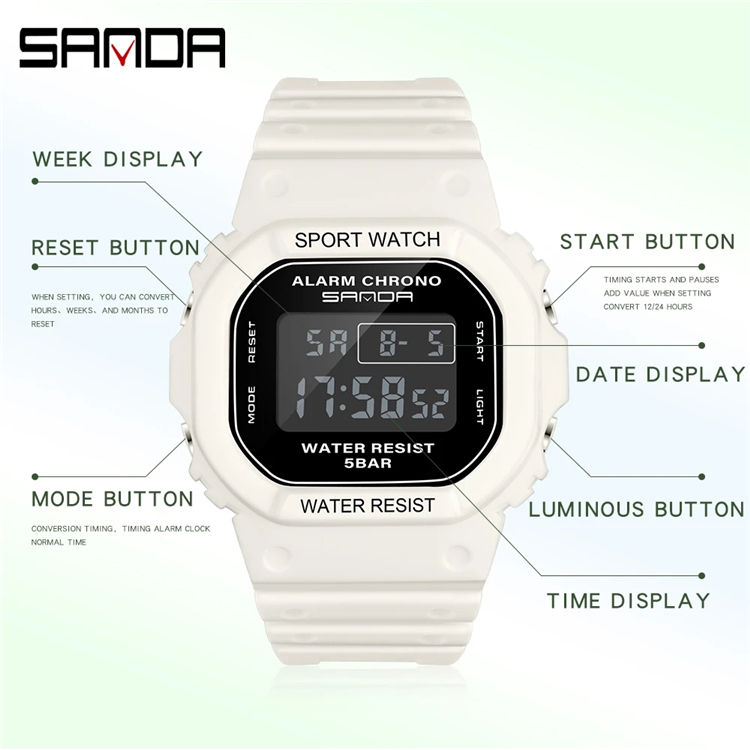 นาฬิกาดิจิตอล SANDA G Style สำหรับผู้ชาย กันน้ำ กันกระแทก นาฬิกาข้อมือผู้หญิง นาฬิกาสปอร์ตสำหรับเด็กชายและเด็กหญิง นาฬิกาอิเล็กทรอนิกส์ นาฬิกาควอตซ์