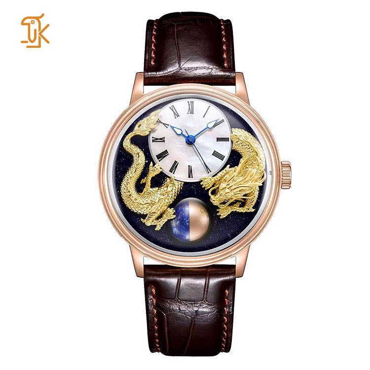 นาฬิกาอัตโนมัติ SANYIN แบรนด์ส่วนตัว รุ่น Golden Dragon ดีไซน์โดดเด่น หรูหรา พร้อมฟังก์ชั่นแสดงข้างขึ้นข้างแรม สายหนัง ผลิตโดยผู้ผลิตนาฬิกาชั้นนำ