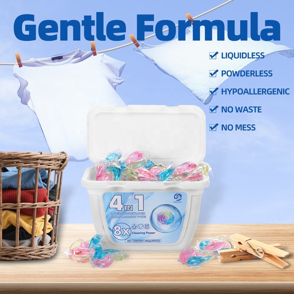 Sanyuan ผงซักฟอกแบบ4 in 1เม็ดสีฟ้า