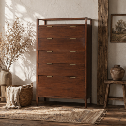 ชุดเฟอร์นิเจอร์ห้องนอนและห้องนั่งเล่นไม้คอลเลคชั่น SAPA RANGE ตู้ลิ้นชักทรงสูง 4 ชั้น ทนทาน เป็นมิตรกับสิ่งแวดล้อม