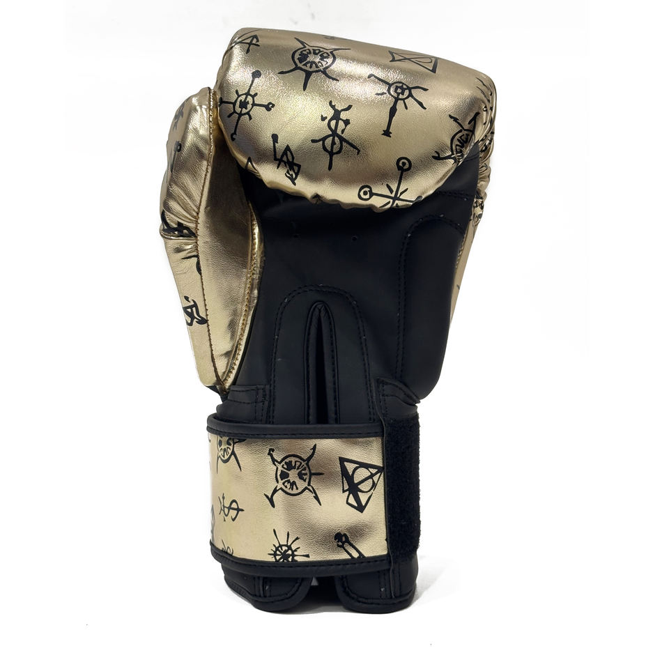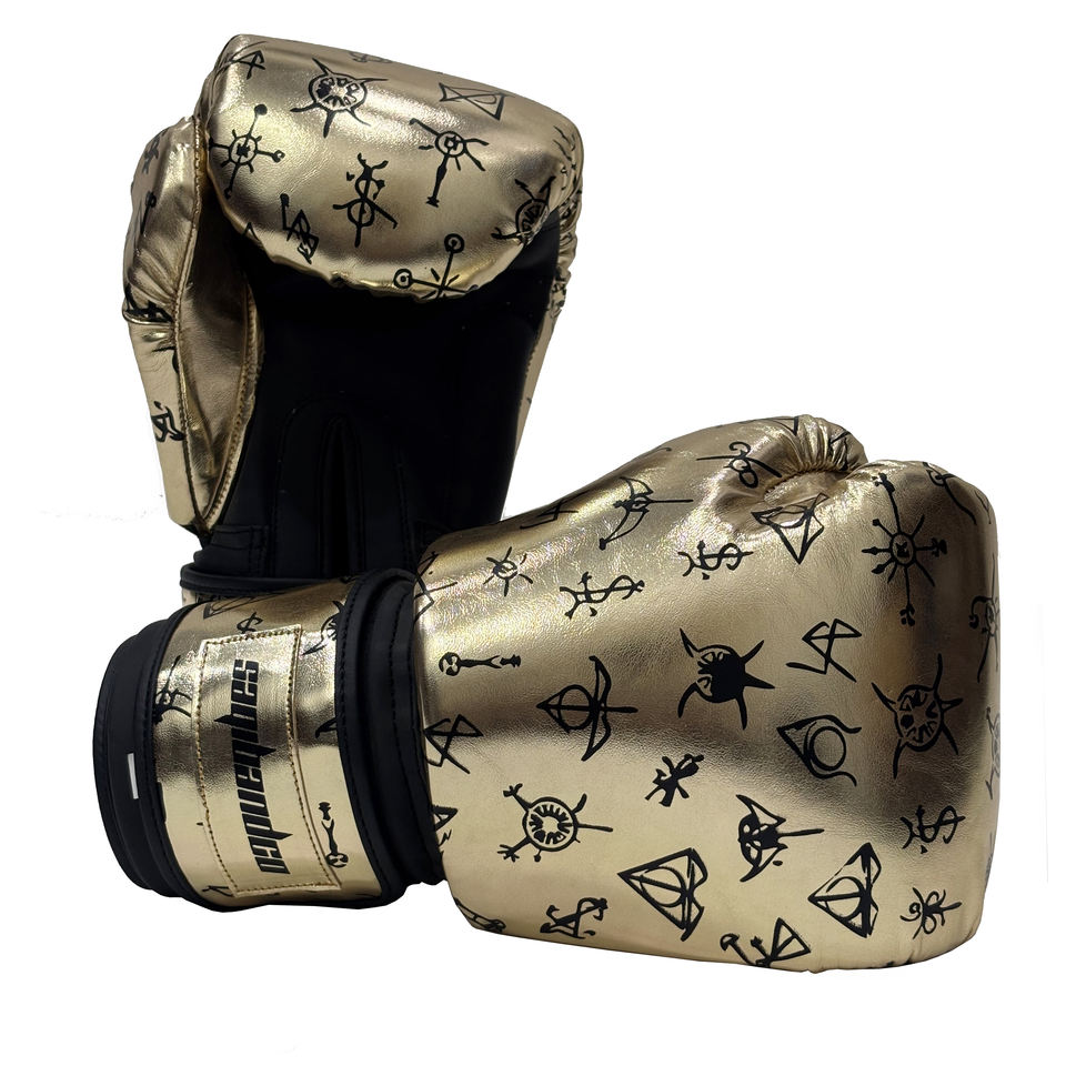 ถุงมือชกมวย MMA และซานด้า SAQIB&CO สีทองเมทัลลิก - ถุงมือฝึกซ้อมหนัง PU กันน้ำ พร้อมตัวเลือกปรับแต่งได้