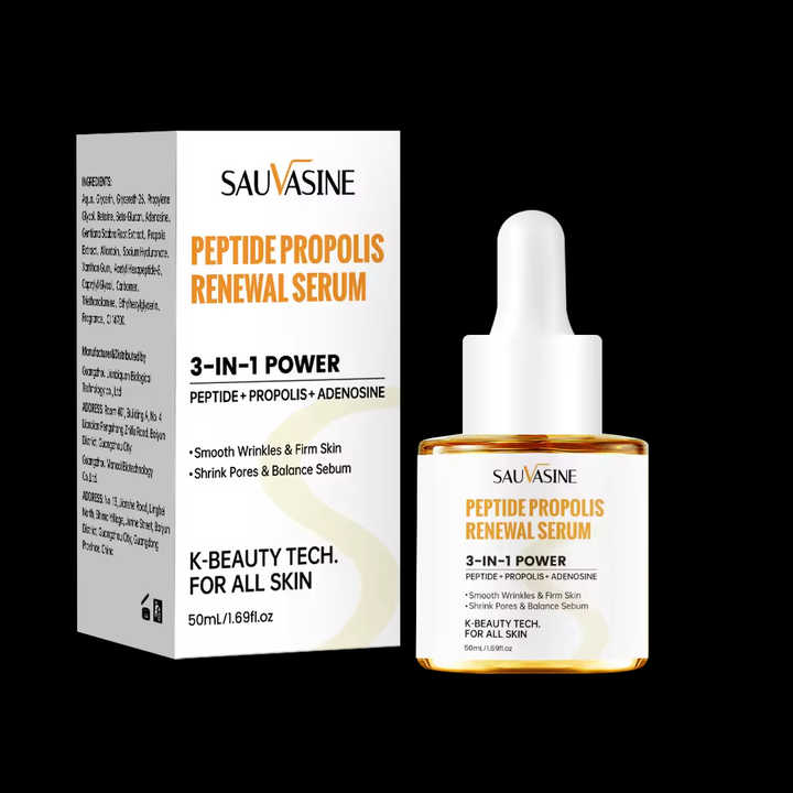 เซรั่มบำรุงผิวหน้าสูตรเข้มข้น OEM/ODM ผสมเปปไทด์และโพรโพลิส ช่วยฟื้นฟูผิว ลดเลือนริ้วรอย พร้อมกลีเซอรีน