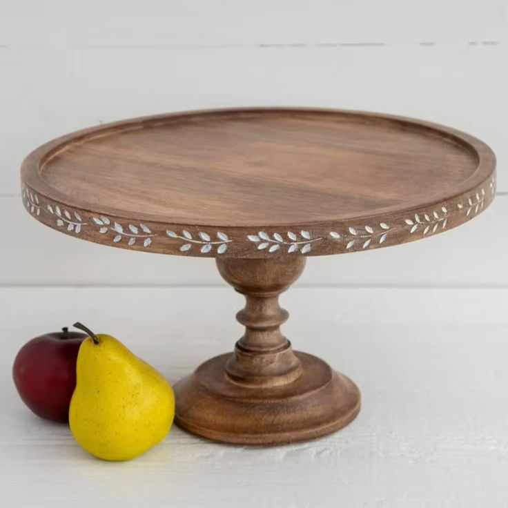 ถาดไม้อาคาเซียแบบขาสูงทำจากไม้อะคาเซียแท่นวางเค้กสำหรับเสิร์ฟเค้กและผลไม้