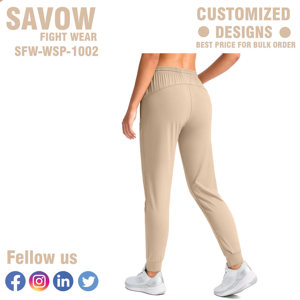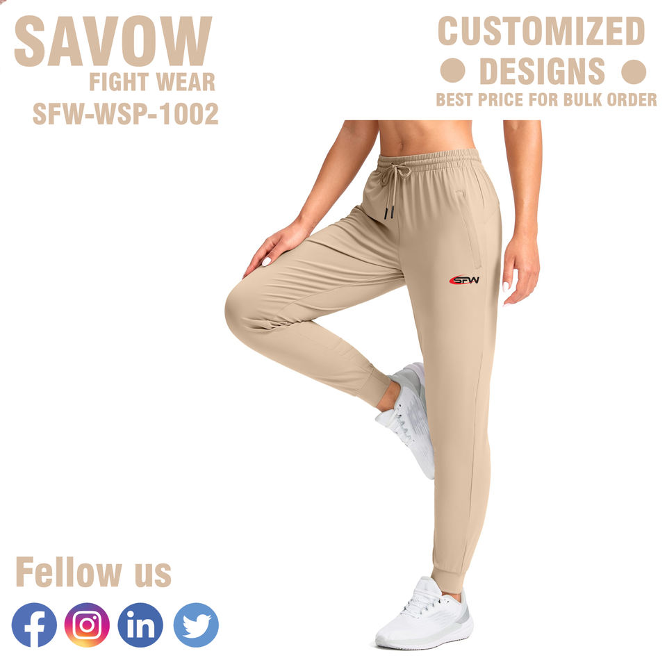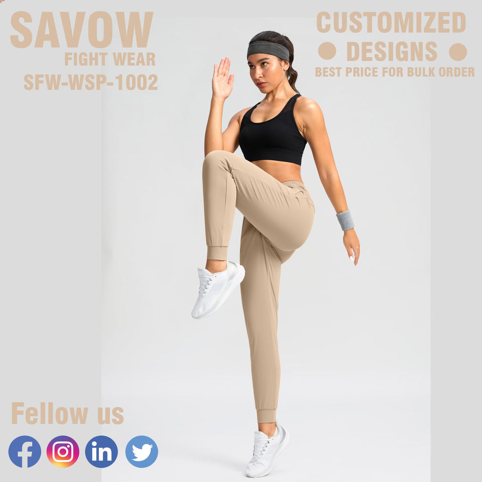 กางเกงวอร์มผู้หญิง SAVOW FIGHT WEAR แบบสั่งทำพิเศษ เอวยางยืด กางเกงคาร์โก้ จ็อกเกอร์ เชือกผูกเอว ทรงปกติ รับผลิตตามแบบ (OEM) ขายส่งจำนวนมาก 2 ชิ้น