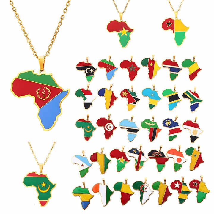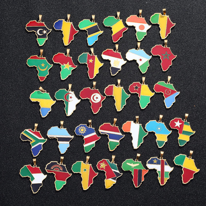 SC ขายส่งทุกประเทศในแอฟริกาแผนที่สร้อยคอแฟชั่นที่มีสีสันหยดน้ำมันสแตนเลสแอฟริกาแผนที่สร้อยคอสำหรับผู้หญิงผู้ชาย