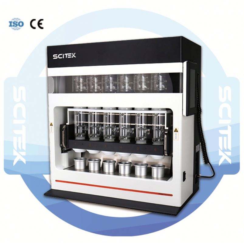 เครื่องวิเคราะห์ไขมัน SCITEK น้ำหนักตัวอย่าง 0.5~15 กรัม 6 ชิ้น/ชุด ปริมาตรถ้วยตัวทำละลาย 80 มล. สำหรับห้องปฏิบัติการ