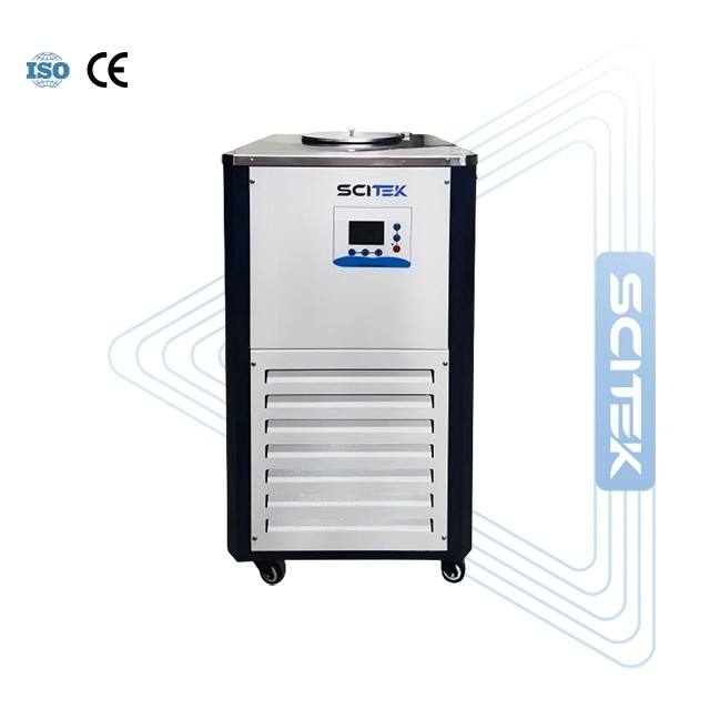 เครื่องควบคุมอุณหภูมิแบบหมุนเวียนของเหลวทำความเย็นอุณหภูมิต่ำ SCITEK ใช้สารทำความเย็น R22/R404 พร้อมเซ็นเซอร์วัดอุณหภูมิ PT100 ถังสแตนเลสอัจฉริยะ