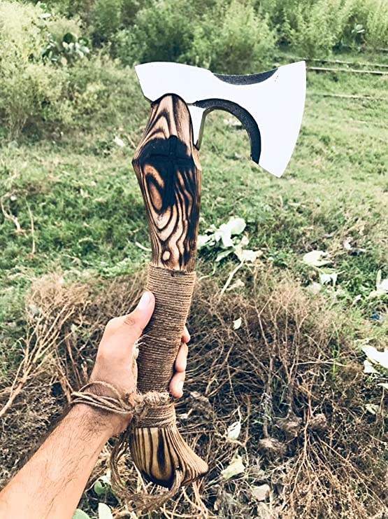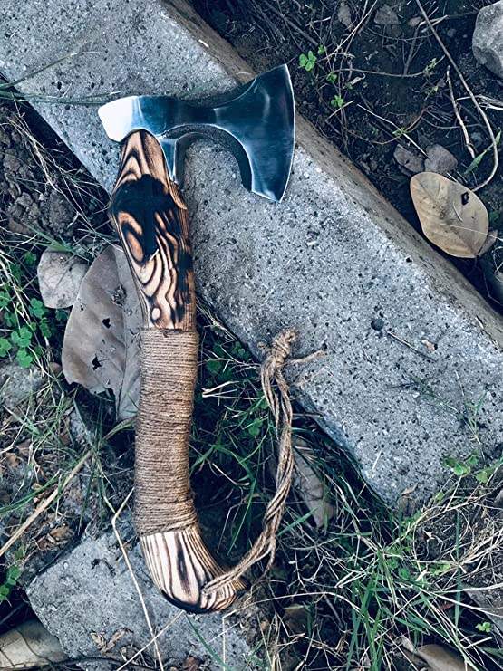 ขวานวิคกิ้ง SCL ดีไซน์แท้แบบโทมาฮอว์ก ใบมีดเหล็กกล้าคาร์บอน ด้ามไม้ สำหรับตัดไม้ งานแฮนด์เมดเพื่อการประวัติศาสตร์