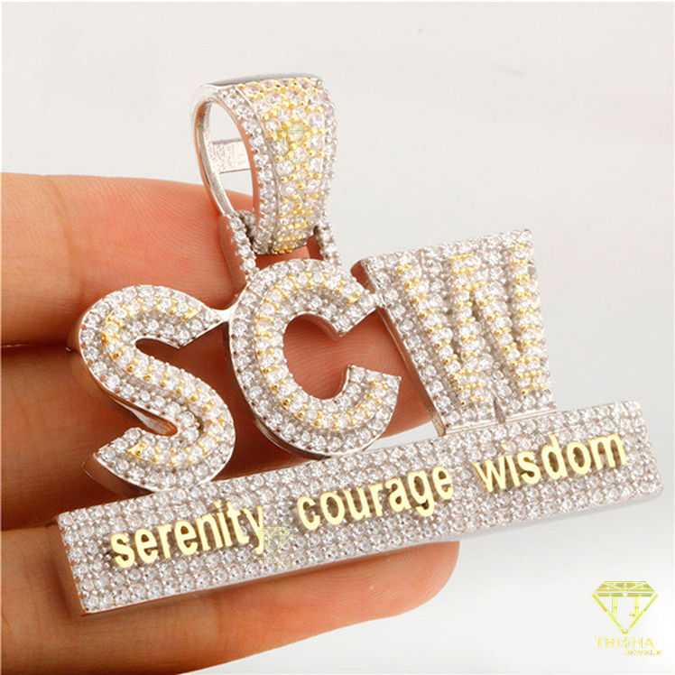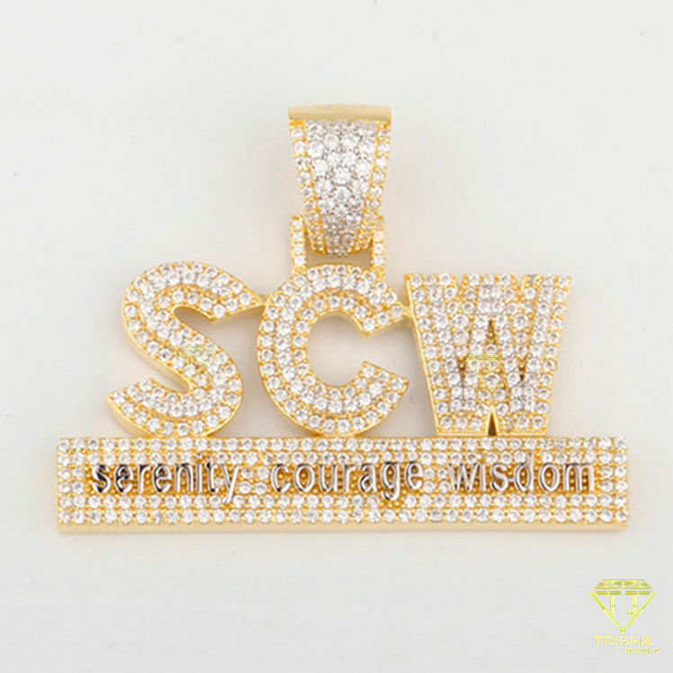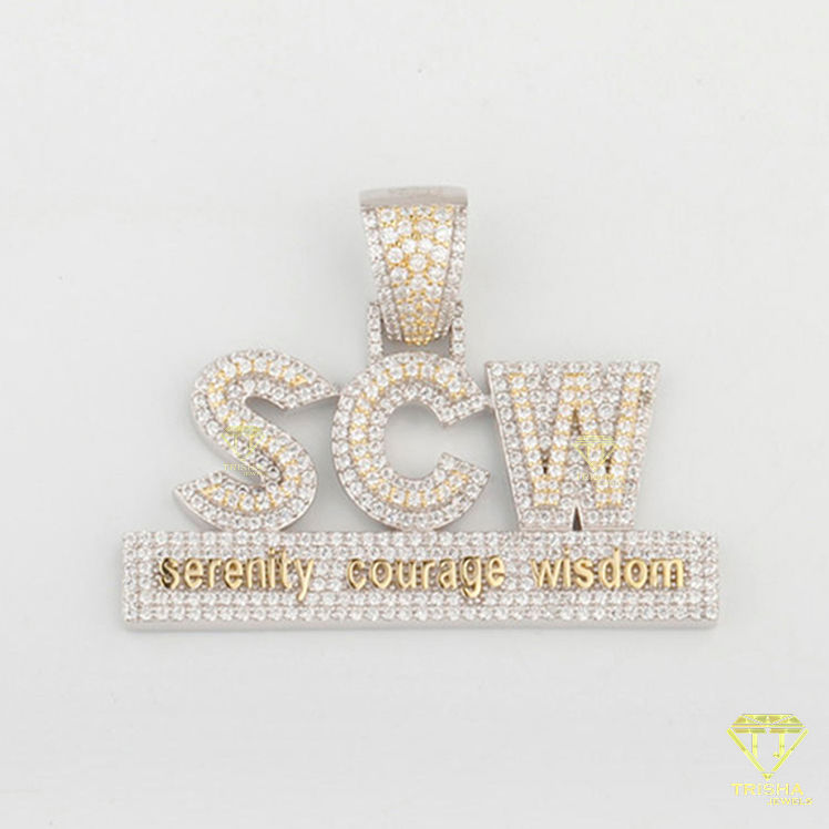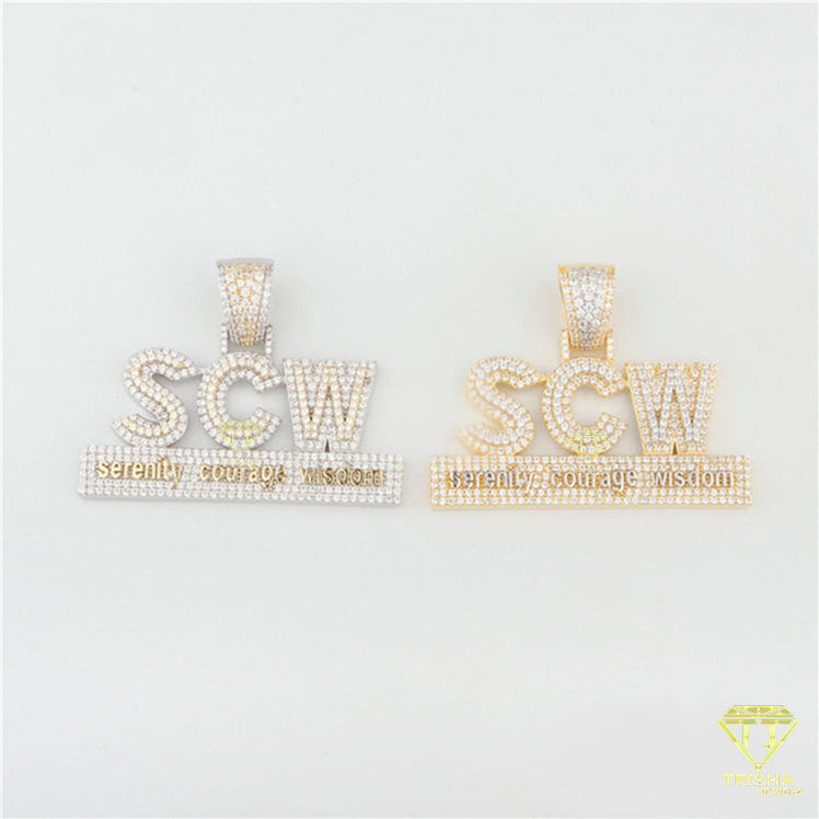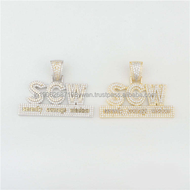 จี้เพชรมอยส์ซอไนต์ SCW เครื่องประดับเพื่อความกล้าหาญและความประณีตจี้ที่ออกแบบได้เองจี้ฮิปฮอปส่องแสงเป็นประกายวิบวับจี้ตัวอักษรประดับเพชร