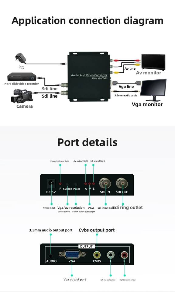 ตัวแปลงสัญญาณ SD/HD/3G-SDI เป็น VGA HD SDI เป็นอนาล็อกความละเอียดมาตรฐาน CVBS