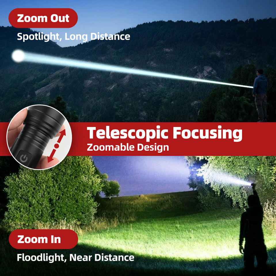 SD326 ไฟฉาย LED 18650 แบตเตอรี่แบบชาร์จไฟได้ประเภทซีชาร์จไฟสีขาวกำลังสูงแบบพกพามินิซูม