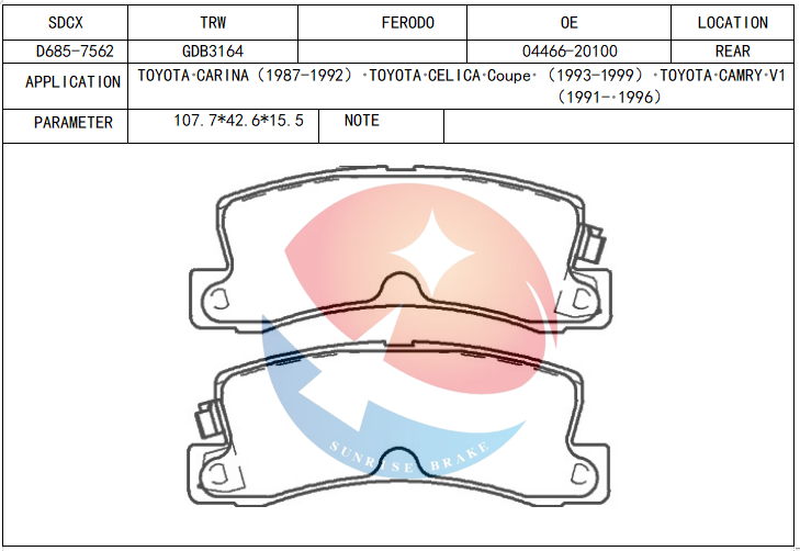 D685-7562, 04466-20100, GDB3164, 04466-20020, 446632010, 04466-32010, 04466-32020, 04466-32050, 04466-33040, 04466-33050, 0446648010, 04492-20090, 449220090, D2114MOE NO