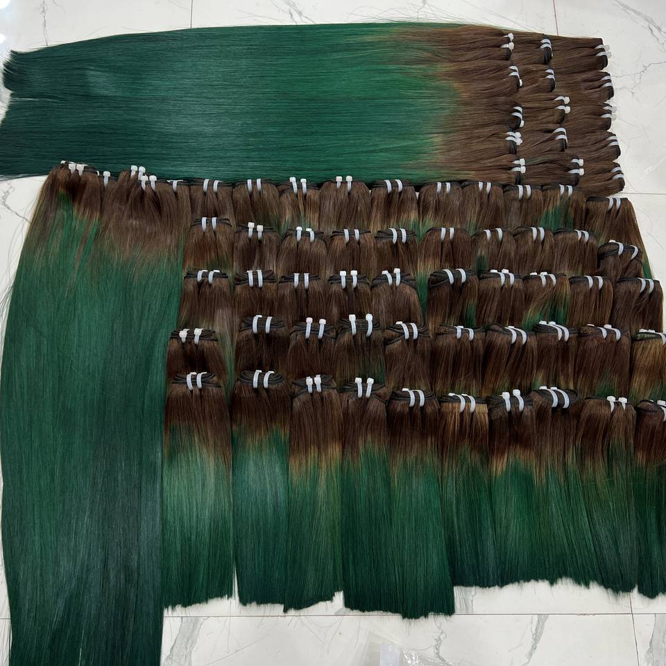 ผมต่อจากโรงงานผมมนุษย์จากเวียดนามมัดผมตรงสีเขียวเข้มวัสดุรากดำแบบไล่ระดับสี