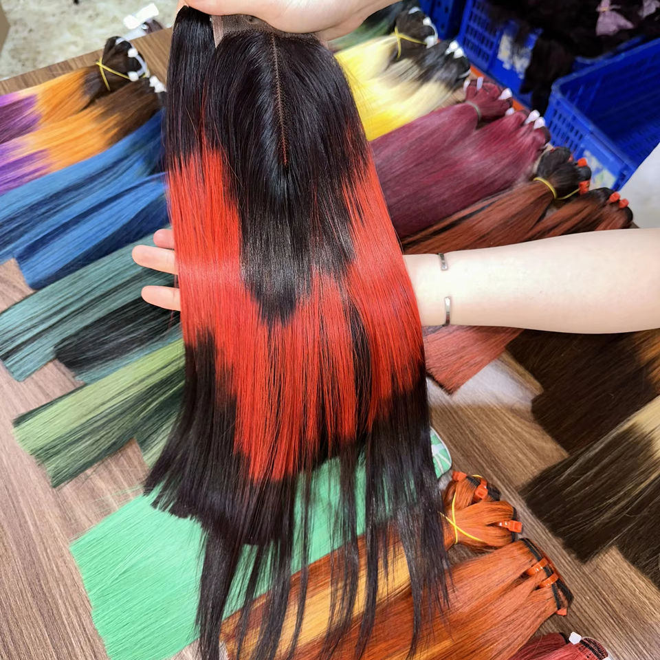 SDD มัดผมแบบผสมสีพร้อมที่ปิดผมตรงจากกระดูกผมคนเวียดนามมีที่ปิด