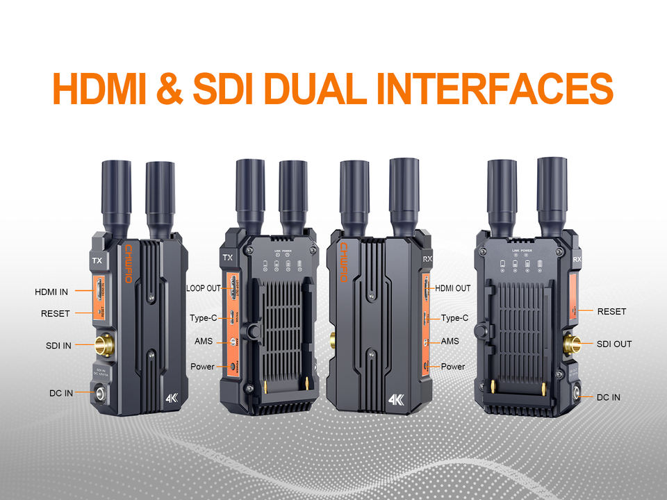 ระบบส่งสัญญาณวิดีโอไร้สาย SDI&HD MI ระยะ 656 ฟุต/200 เมตร รองรับการสตรีมสด 4K ตัวขยายสัญญาณวิดีโอไร้สาย รองรับวิดีโอและเสียง
