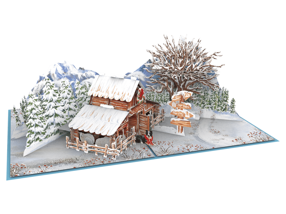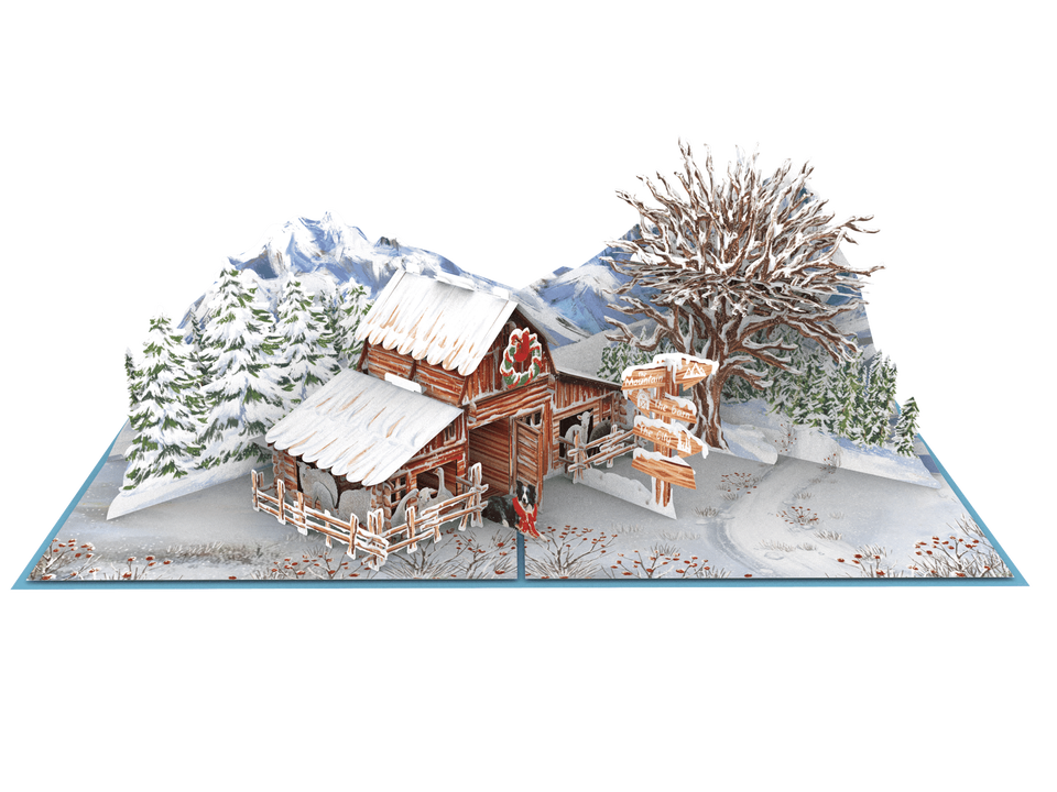 SEAPEARLS Premium 3D Pop-Up Christmas Cottage Scene Cards 127x178mm Printed Industrial Art Paper CMYK Colors Matte/Gloss/UV