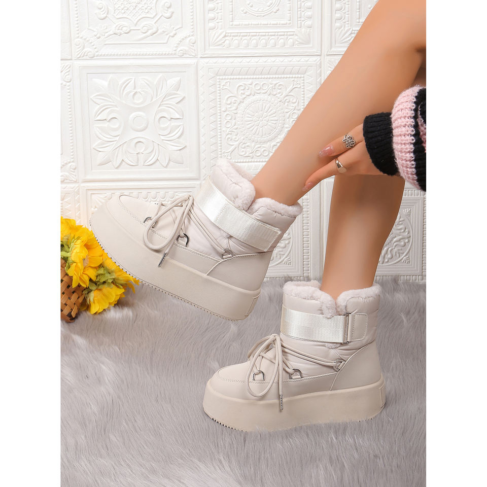 Seastar บูทหิมะแฟชั่นผู้หญิงฤดูใบไม้ร่วงฤดูหนาว, รองเท้าบู้ทหนังพีวีซีหนังแท้สวมใส่สบายดีไซน์ข้อเท้า
