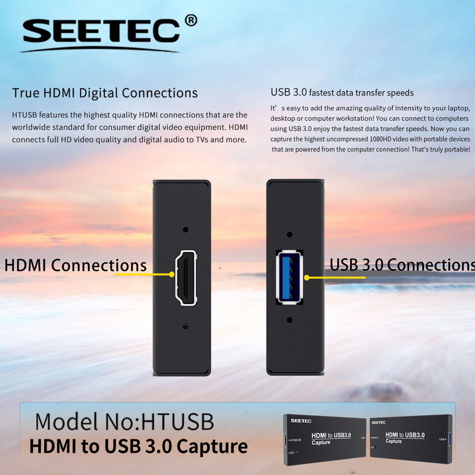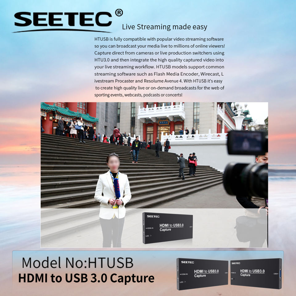 การ์ดแคปเจอร์ HDMI SEETEC HTUSB, USB 3.0 ความหน่วงต่ำ, ตัวเครื่องโลหะ, บริการ ODM สำหรับการผลิตแบบสด