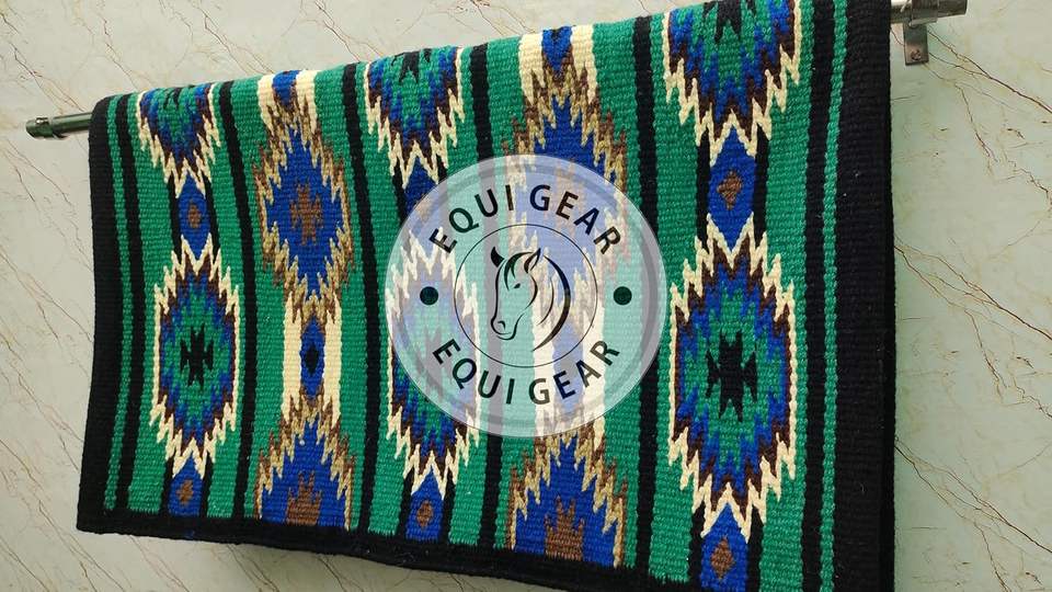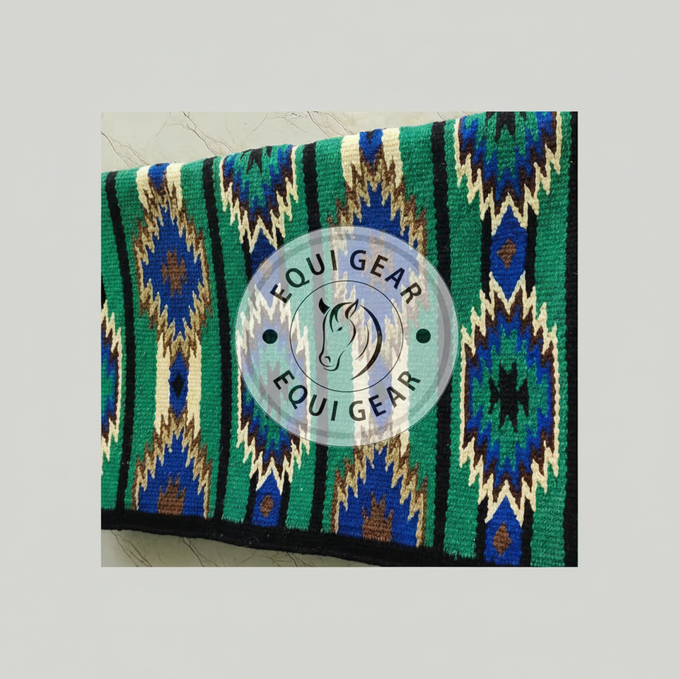 ผ้าห่มอานแบบตะวันตกผ้าห่มขนสัตว์สีเขียวเข้ม