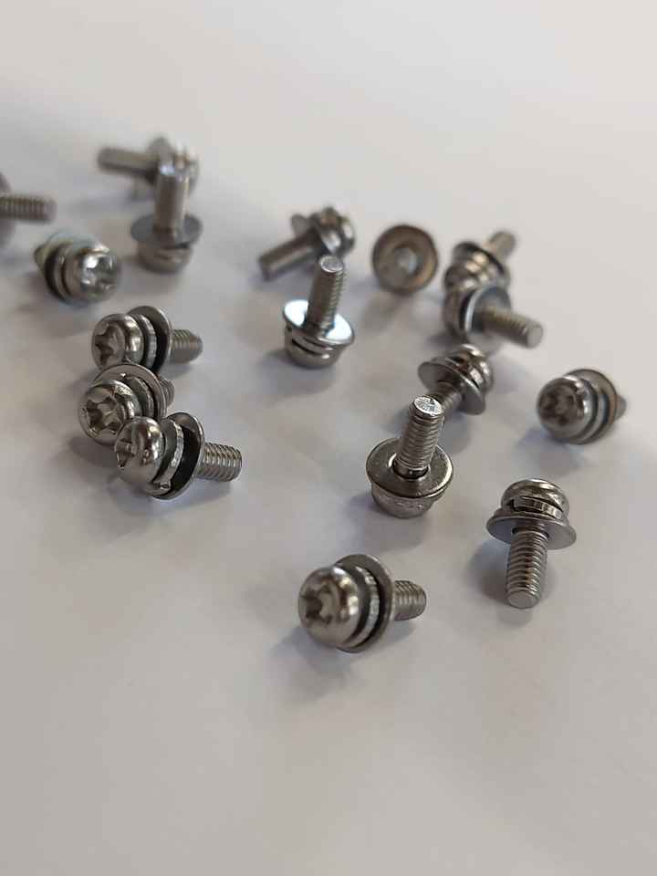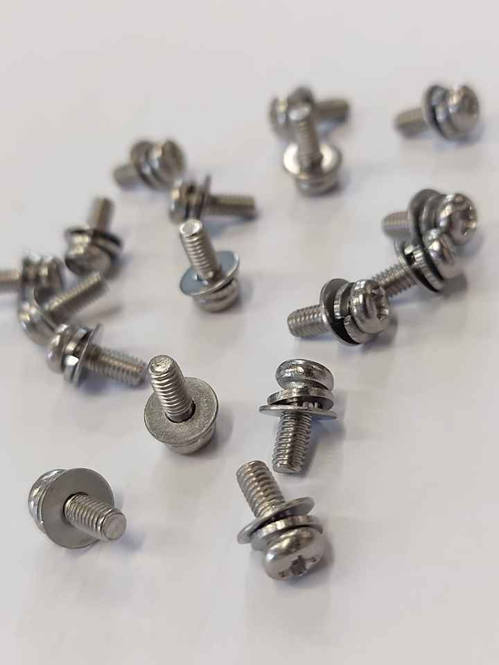 สกรูหัวแฉก SEMS JIS M3 X 8 พร้อมแหวนล็อค สีธรรมชาติ สแตนเลส 304 มาตรฐาน DIN 7985 สำหรับอุปกรณ์อิเล็กทรอนิกส์ทางทะเล