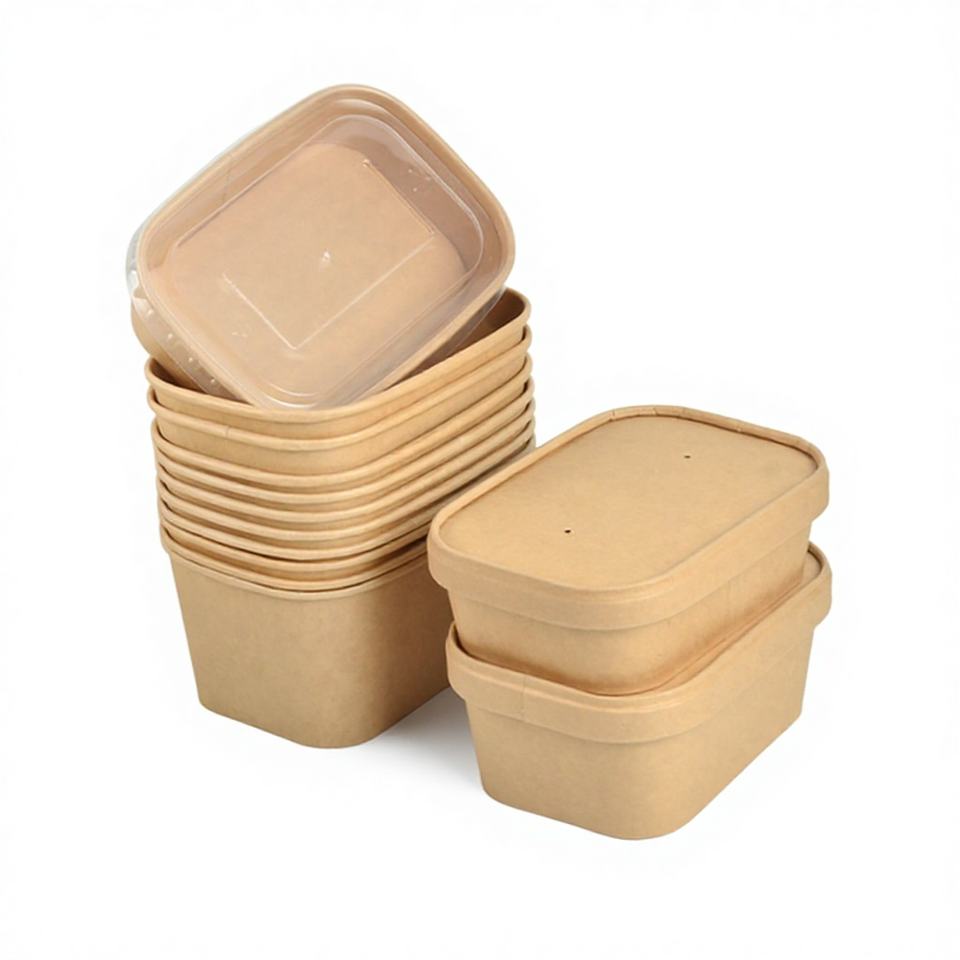 ภาชนะใส่สลัดกระดาษรูปสี่เหลี่ยมผืนผ้าและสี่เหลี่ยมจัตุรัสแบบใช้แล้วทิ้งย่อยสลายได้เองตามธรรมชาติ SENANG พร้อมฝาปิด สำหรับเสิร์ฟอาหารและของแจก