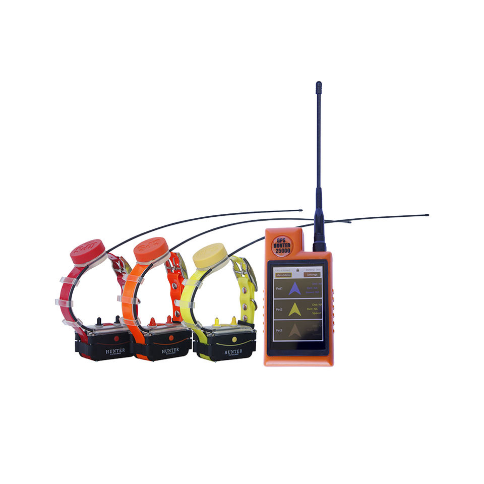 ชุดปลอกคอติดตาม GPS สำหรับสุนัข3ตัวพร้อมฟังก์ชันการฝึกสำหรับล่าสัตว์ GPS-DTR-25000-PRO-COMPASS LCD 3.5นิ้ว