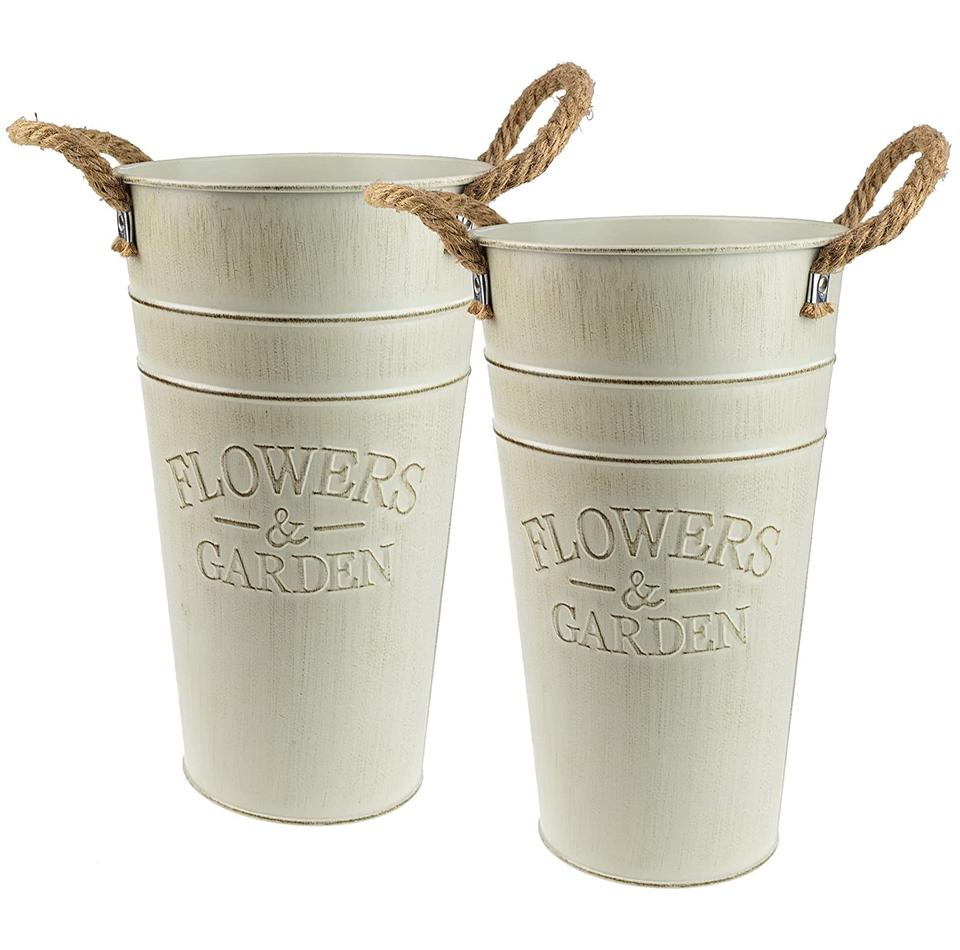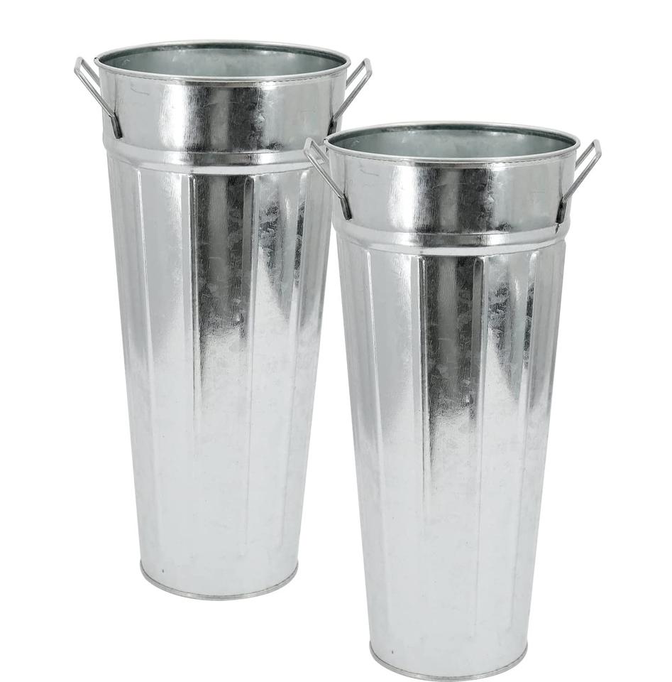 ชุดที่ปลูกดอกไม้โลหะชุบสังกะสีเกรดสูงสำหรับตกแต่งพื้นในบ้าน2ชิ้นสไตล์บ้านไร่แจกันดอกไม้แขวนทรงสูง