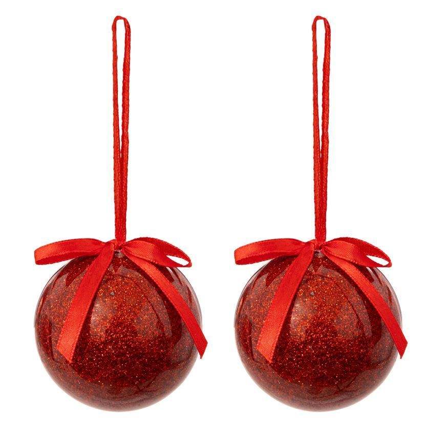 ชุดลูกบอลกระดาษกลิตเตอร์สีแดง 2 ลูก พร้อมโบว์ DIAM 6ซม.
