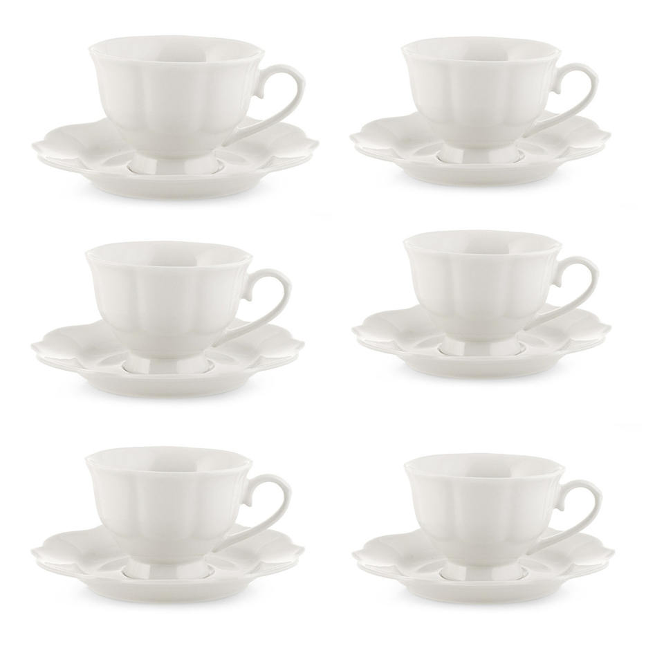 ชุดถ้วยชาพอร์ซเลน 6 ใบ พร้อมจานรองสีงาช้าง 220 ซีซี