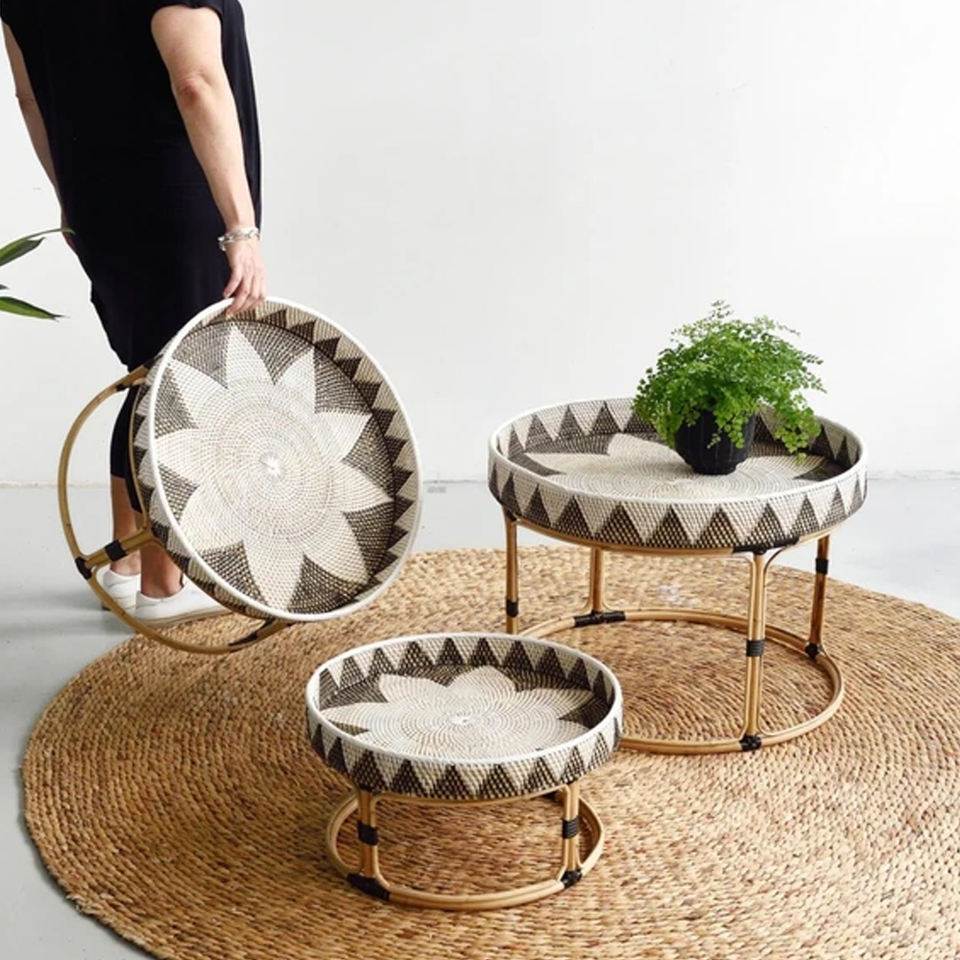 ชุด3ที่ไม่ซ้ำกันรอบหวายตารางถาดที่มีขาสำหรับตกแต่งขายส่งในเวียดนาม