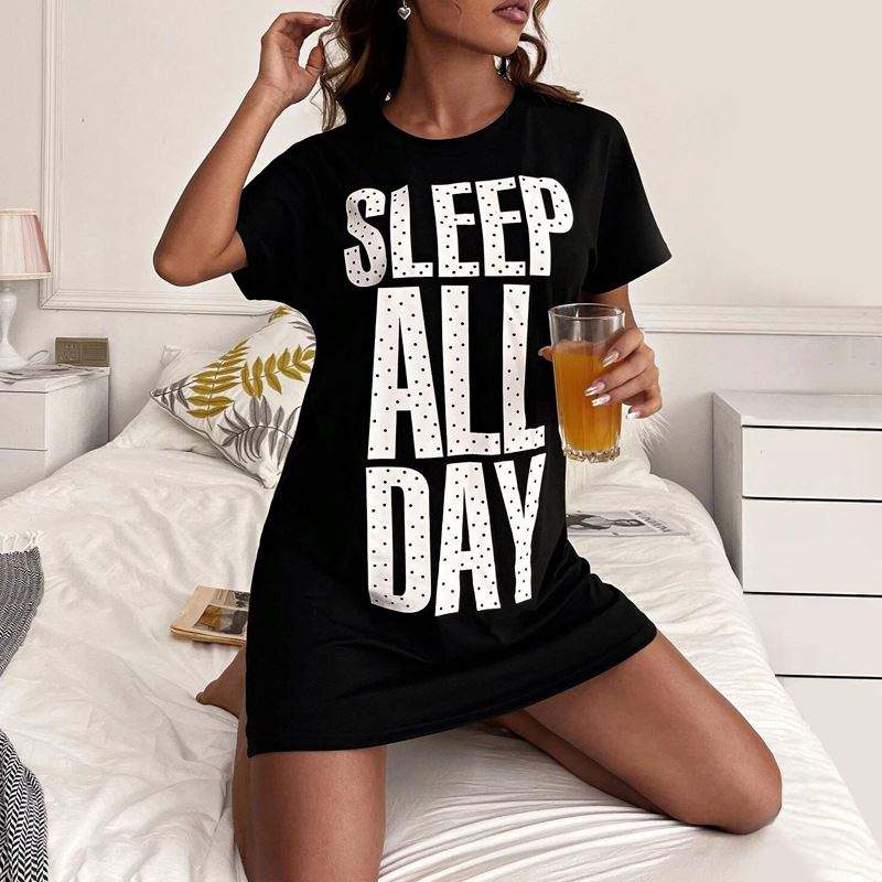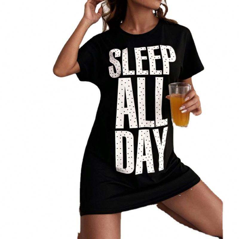 ชุดนอนผ้าสแปนเด็กซ์/คอตตอนคุณภาพสูง SFY-Y700 แขนกุด เอวยางยืด สำหรับฤดูร้อนและฤดูใบไม้ผลิ ปรับแต่งได้ พิมพ์ลาย Monogram "นอนสบายตลอดวัน"