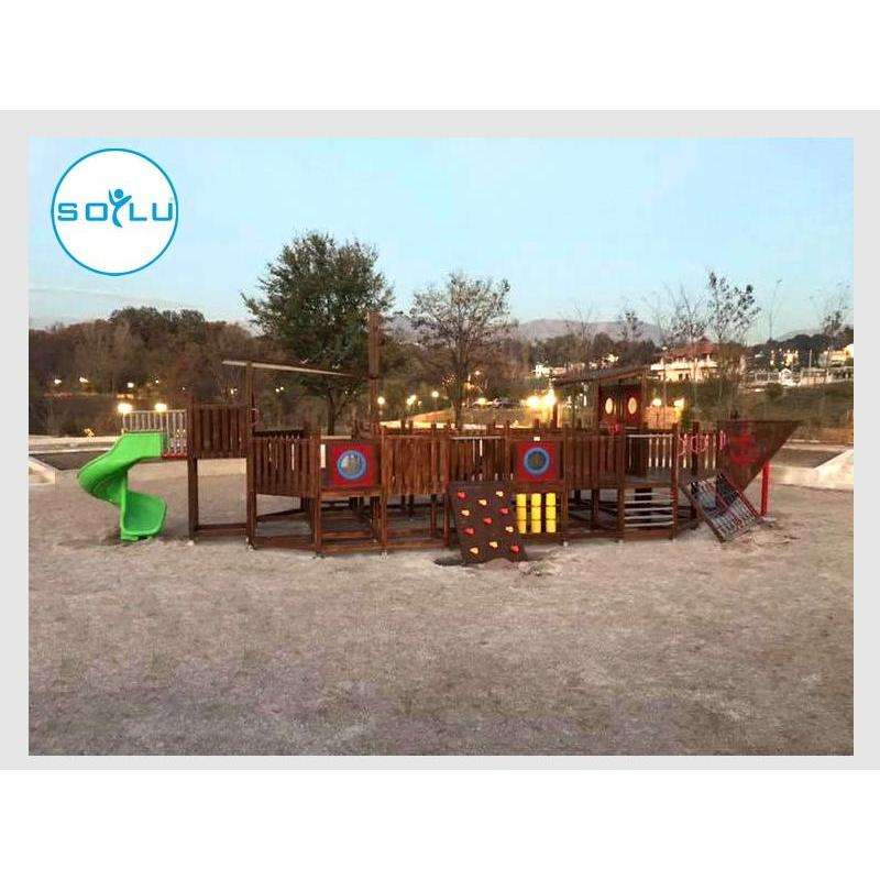 สนามเด็กเล่นธีมเรือโจรสลัดไม้ Soylu Grup SG14 สำหรับเด็ก อุปกรณ์เล่นกลางแจ้งที่ทนทานและปลอดภัย รับประกัน 2 ปี ปรับแต่งได้