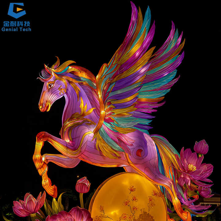 โคมไฟประดับเทศกาลม้าปีกบินสไตล์จีนสำหรับสวนสาธารณะ