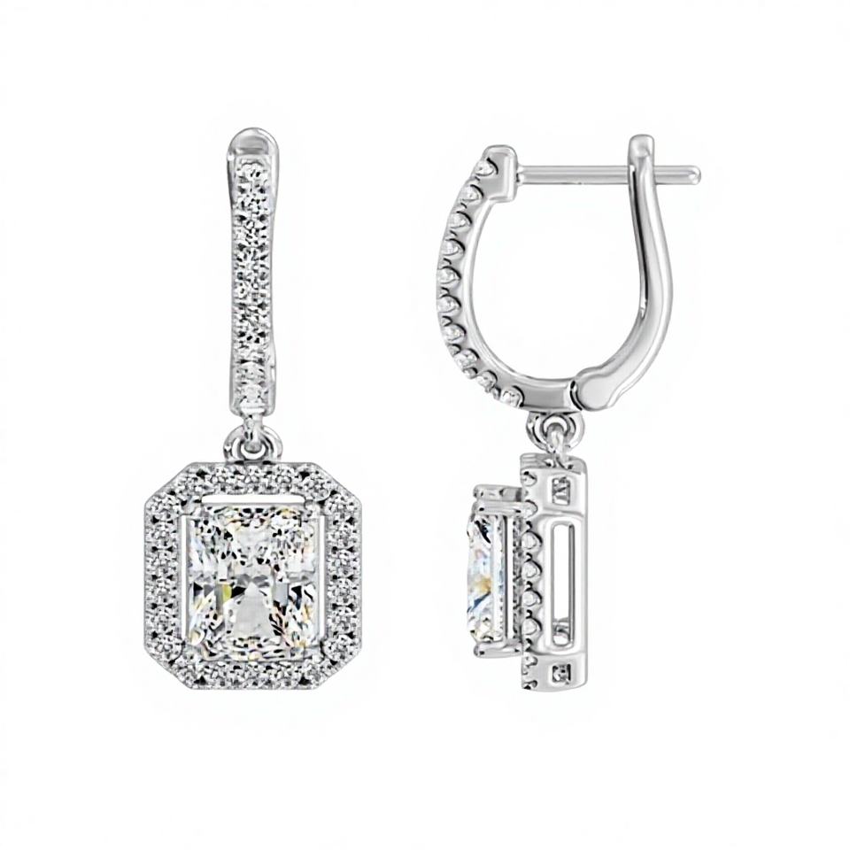 ต่างหูเพชรทรงคุชชั่นเจียระไนแบบฝังขอบ ทอง 14K สีเหลือง ขาว และโรสโกลด์ ชุบโรเดียม ได้รับการรับรองจาก SGL - สำหรับผู้หญิงทันสมัย