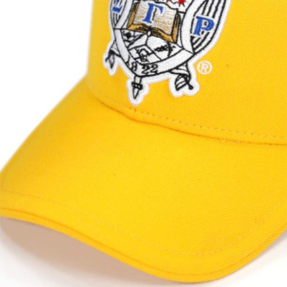 หมวก SGR ทอง | Sigma Gamma Rho sorority Hat | ขนสัตว์20% 80% อะคริลิค | ปักโลโก้ด้านหน้าและด้านหลัง | ปรับได้