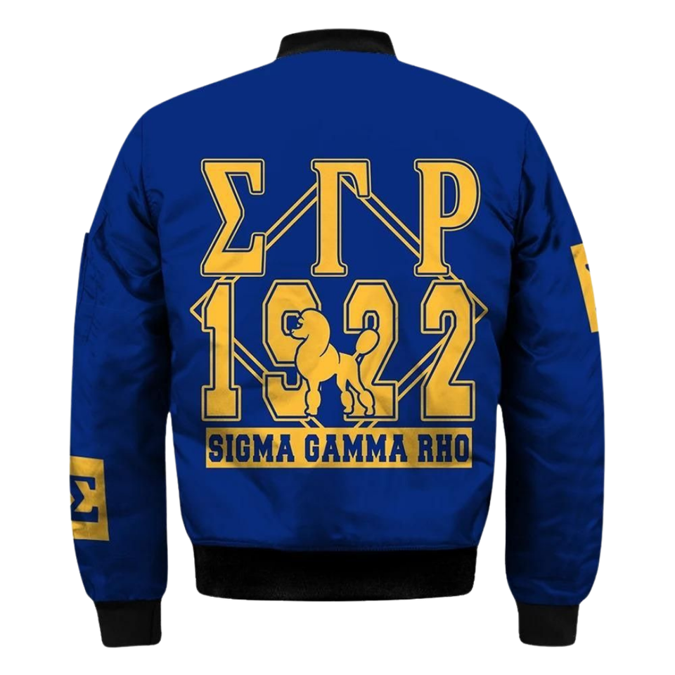 Sgrho Sigma RMA Rho แจ็คเก็ตผ้าซาตินสีฟ้าสีทองเสื้อผ้าสตรีปัก1922กรีก