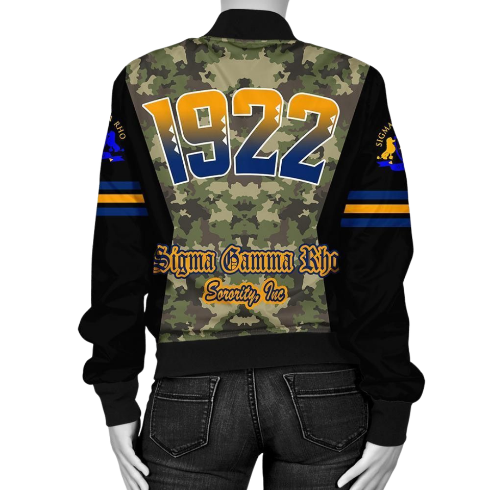 Sgrho Sigma เสื้อแจ็กเก็ตสำหรับสตรีเสื้อแจ็กเก็ตบอมม่าผ้าซาตินสีรอยัลบลูโกลด์1922