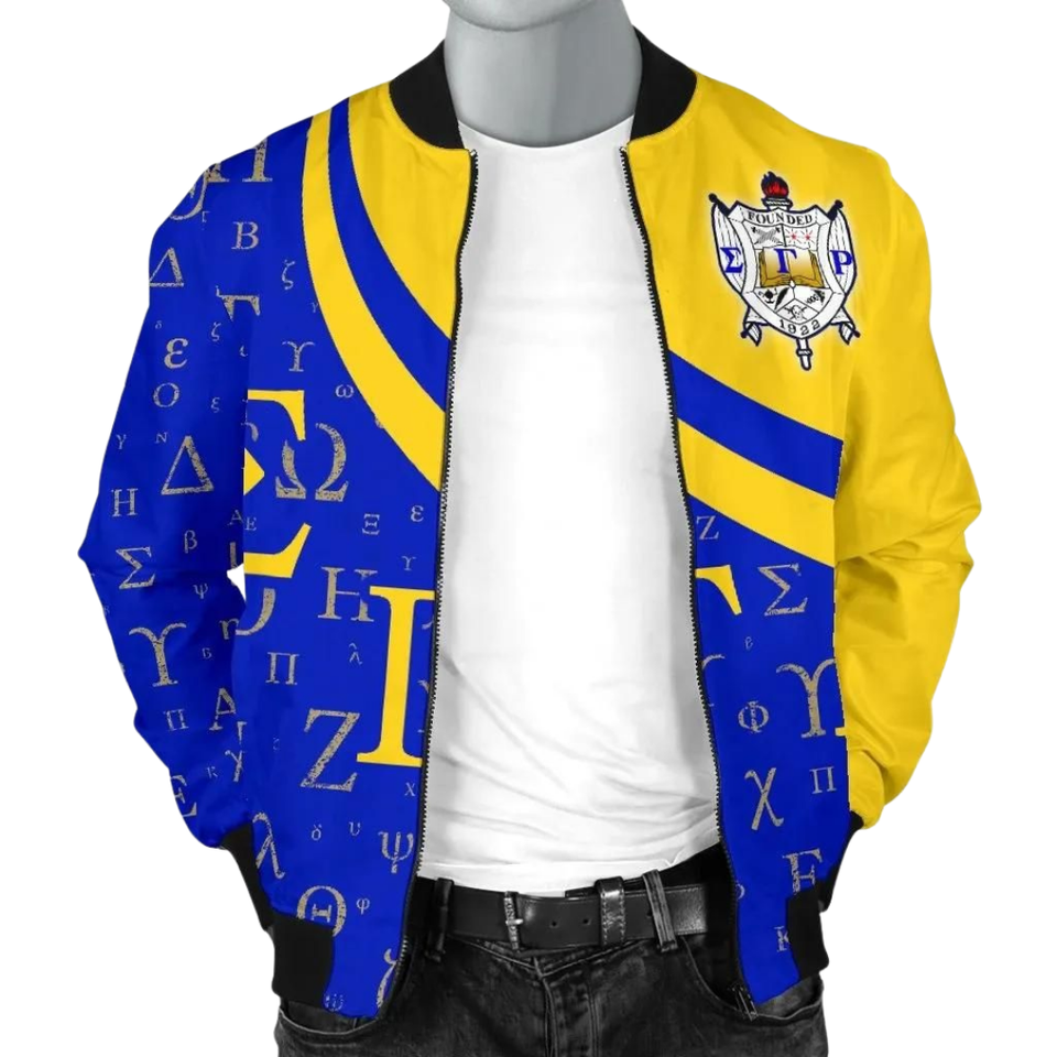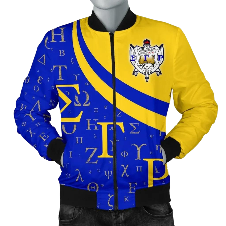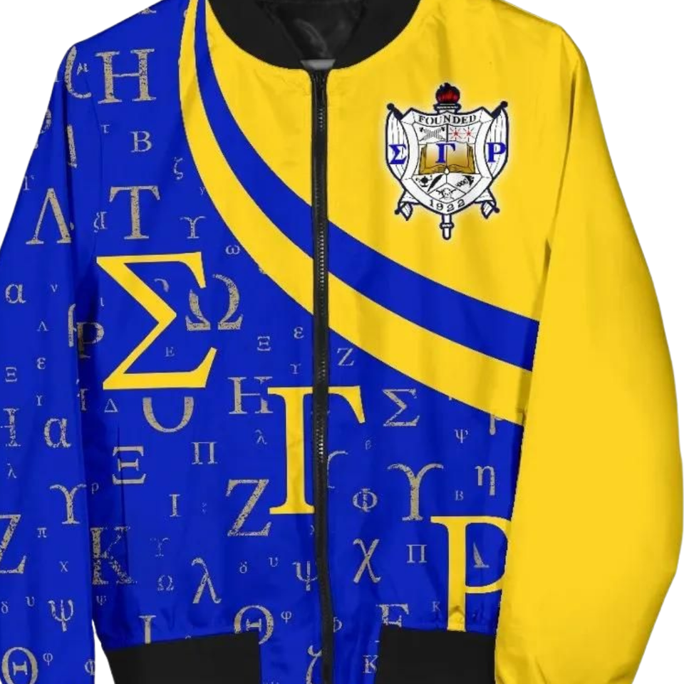 Sgrho Sigma เสื้อแจ็กเก็ตผ้าซาตินสีฟ้าทองสไตล์กรีกปัก1922บอมเบอร์เครื่องแต่งกายสำหรับสตรี