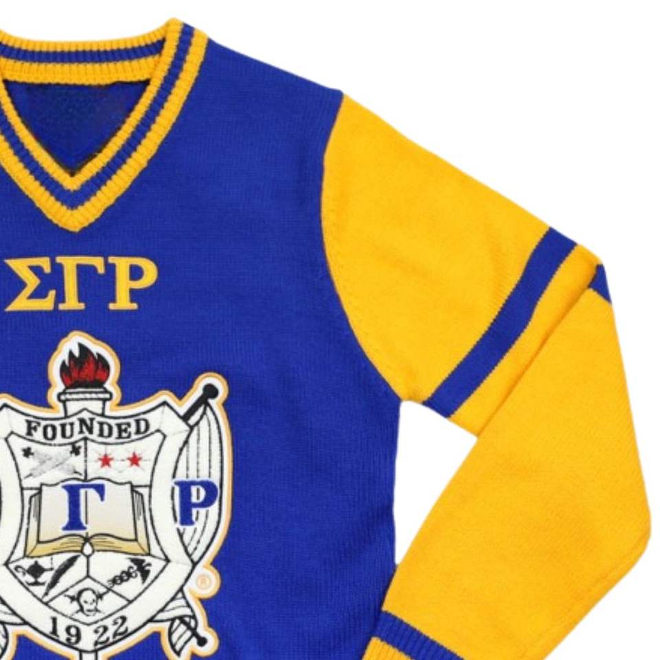Sgrho เสื้อสเวตเตอร์คอวีแขนสีทอง, เสื้อถักนิตติ้งสำหรับนักศึกษาชาวกรีก