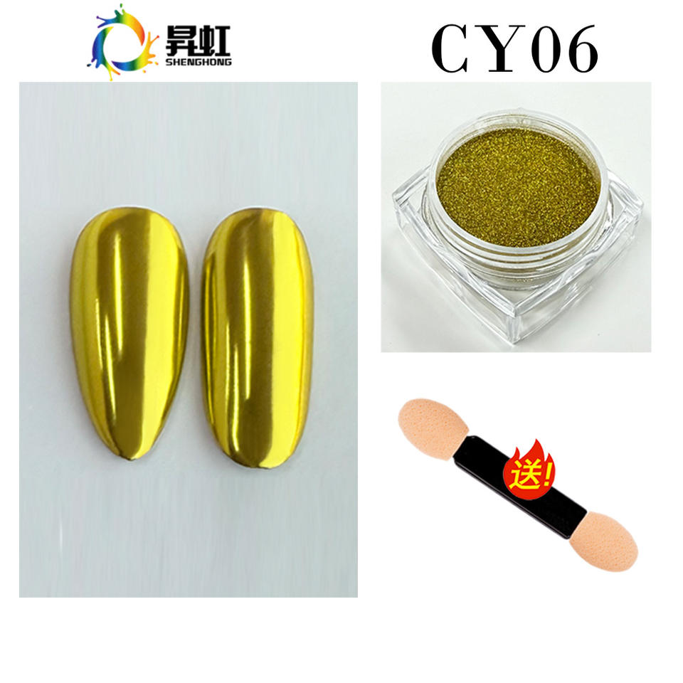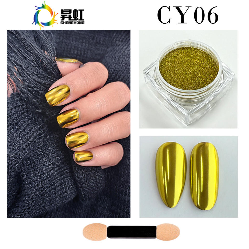 ผงโครเมียมเมทัลลิกสีทอง SH สำหรับตกแต่งเล็บ พรีเมียม 0.3 กรัม/กระปุก พร้อมเอฟเฟกต์กระจกเงาสุดเก๋ CY