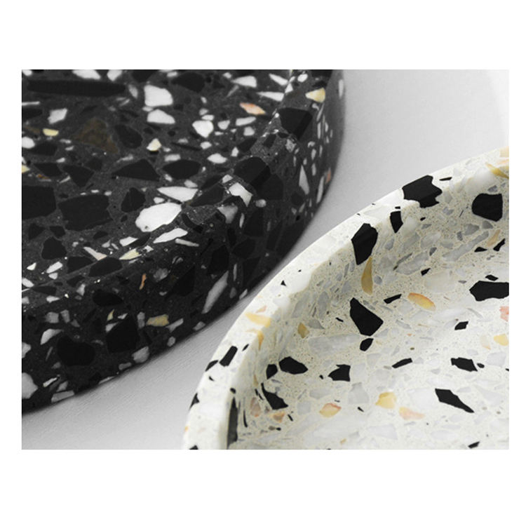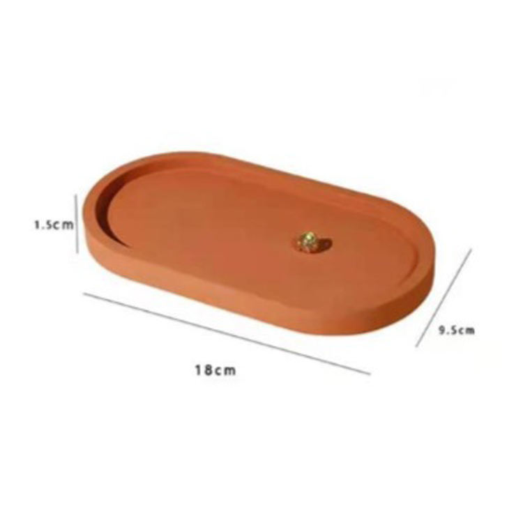 ถาดใส่เครื่องประดับหินธรรมชาติรูปวงรี ถาดปูนซีเมนต์เทอร์ราซโซ ถาดเสิร์ฟ สำหรับตกแต่งบ้านและโรงแรม