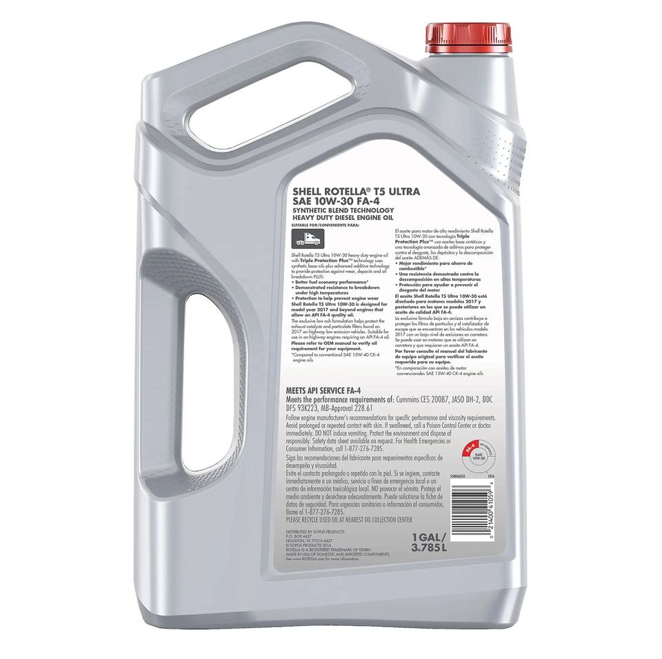 SHELL Rotella ULTRA T5 10W-30 Synthetic Blend Diesel Engine Oil, 1 Gal ( Pack of 3)