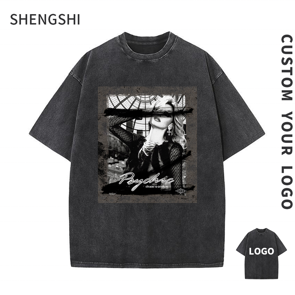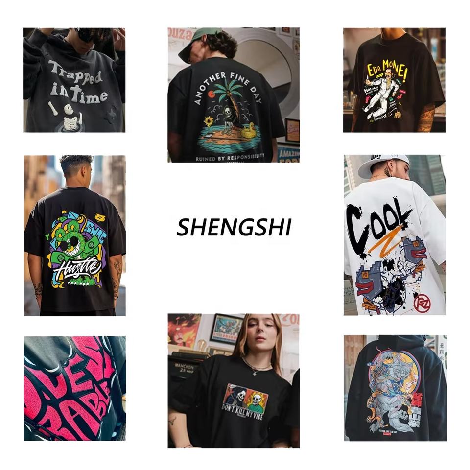 Shengshi เสื้อยืดคอกลมใส่ได้ทั้งชายและหญิง, เสื้อยืดคอตตอน320g สำหรับใส่ได้ทั้งชายและหญิง
