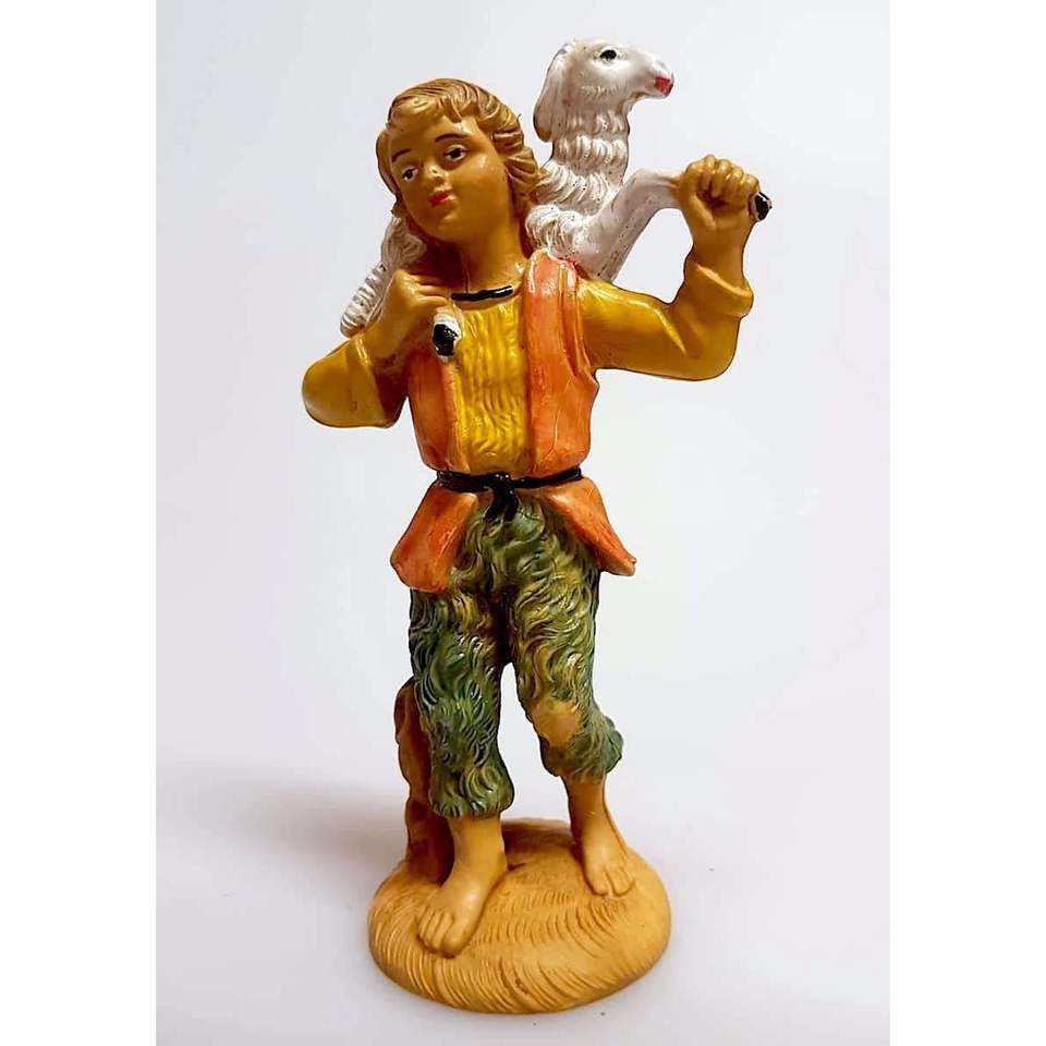 แกะสลักรูปคนเลี้ยงแกะพร้อมแกะ ทำจากพีวีซีลายไม้ สูง 10 ซม.