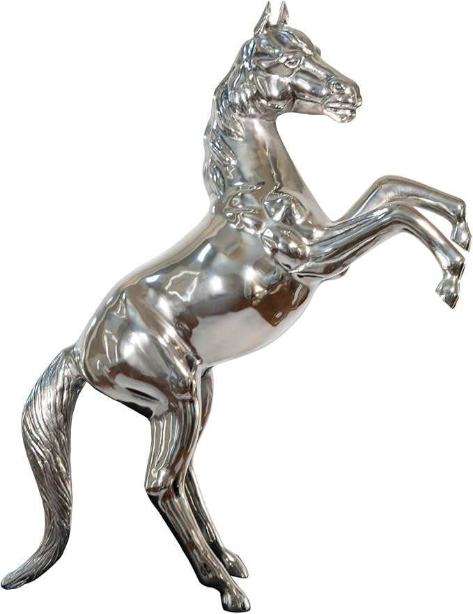 งานประติมากรรมอะลูมิเนียมชุบเงินคุณภาพสูง SHINE HORSE ดีไซน์ทันสมัย สไตล์ศิลปะสัตว์ป่า ของตกแต่งบ้าน งานฝีมือโลหะ ขายดี